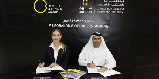 Sharjah Investment and Development Authority (Shurooq) has signed a Memorandum of Understanding (MoU) with Oxford Business Group, a leading global publishing, research and consulting company. The agreement will see the UK-based organisation conduct an in-depth study on the emirate’s economic landscape, with the report to form the basis of the emirate’s ongoing investment promotion strategy.