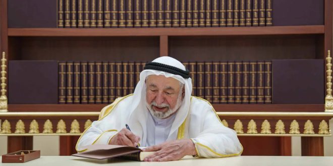 His Highness Sheikh Dr Sultan bin Mohammed Al Qasimi, Supreme Council Member and Ruler of Sharjah, and Supreme President of the Arabic Language Academy in Sharjah, signed on Thursday morning the inaugural edition of the first phase of the Comprehensive Arabic Encyclopedia of Science, Literature, Arts and Notable Figures, at the Dr Sultan Al Qasimi Centre.